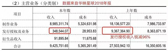 华映星球业绩变化主要原因是公司重要项目还处于制作阶段,不能完全实现销售收入;2017年度发生的《笨鸟先飞》和《魔晶猎人》的授权业务还在有效期限内,2018年则未发生有类似授权业务。