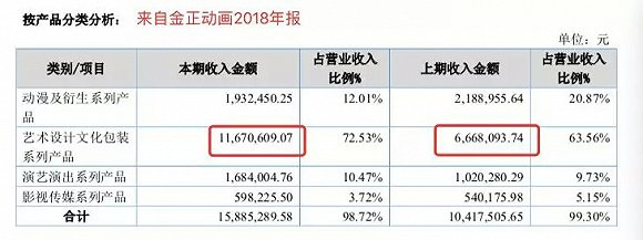 金正动画收入虽然增加了大约560万元,但增长主要来自其艺术设计文化包装系列产品;来自动漫及衍生系列产品的收入相比2017年也是有所下降。