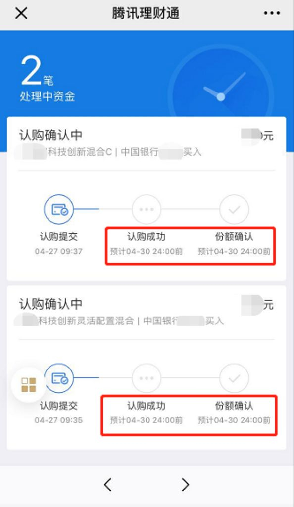 作为第三方代销渠道巨头,目前腾讯理财通已经上线了华夏、南方、汇添富、富国等5家公募旗下的科创基金,经基金君测试,目前已经可以提交认购,但预计将在4月30日(下周二)24点之前才会确认认购结果和确认份额。