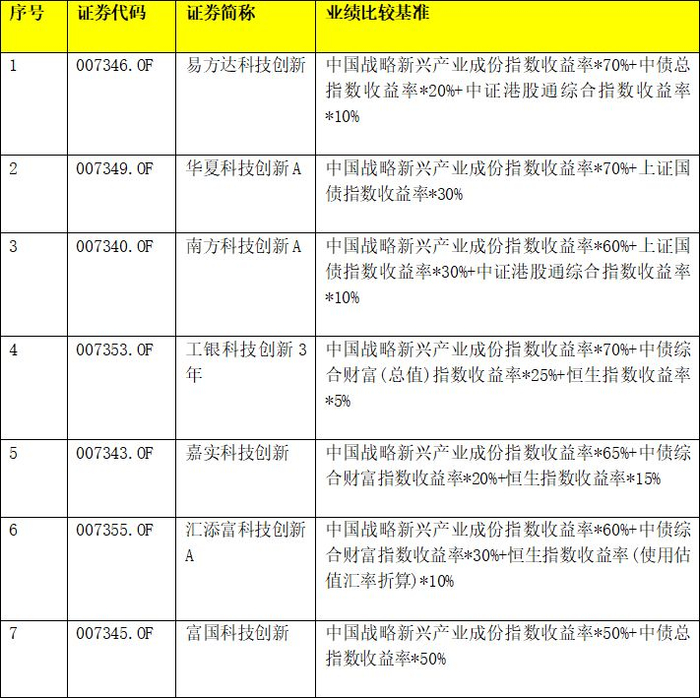 答:由于目前尚无科创板主题指数发布,首批科创板主题基金将统一采用“中国战略新兴产业成份指数”作为业绩比较基准的权益部分,该指数主要投资于国内战略新兴产业,成份股与科创板涉及领域较为贴近,适合作为衡量产品表现的基准。不过比例略有差异,值得投资者关注。