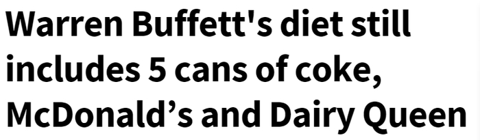 Via foxbusiness.com; 沃伦⋅巴菲特的每日饮食里还包括五罐可乐,麦当劳和DQ的冰淇淋