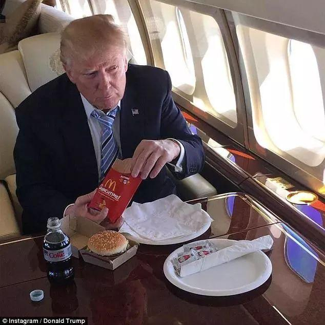 他就是美国现任总统特朗普!但这样的饮食习惯,除了让他体重超出健康标准,并没有引起严重的健康问题。