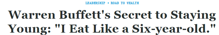 Via fortune.com;巴菲特保持年轻的秘诀:“我吃的像一个六岁儿童。”