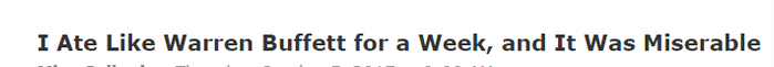 他吐槽:我像巴菲特那样吃了一周,然后我感觉我要废了 。