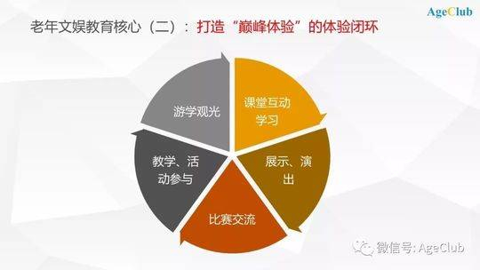 这个闭环其实是把老年教育机构的各项业务都融合进去,课程、展示、比赛、游学都是可以收费的项目,同时要坚持在每个环节、活动里为学员打造很独特的体验;