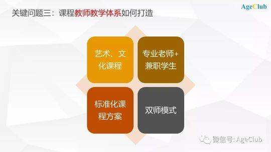 再看第三个关键问题,课程的教师教学体系如何打造。这个体系其实是很重要的,决定了老人过来能不能真学到东西、学一段时间后是不是能让周边亲戚朋友刮目相看,让大家觉得来商业机构学习真的是值的。
