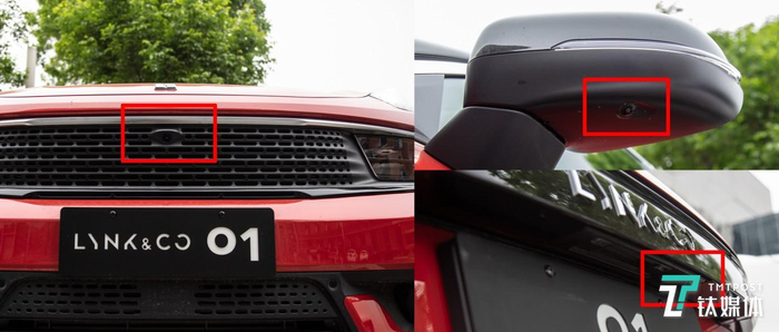2019款领克01搭载了360°全景影像系统。在车身周边搭载了4个Conti第三代摄像头,分辨率达到1280*720,通过车前、左/右侧以及尾部四个角度拍摄,进而通过内置算法合成360°全景影像。