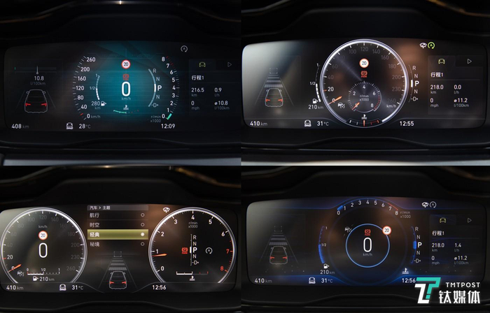 2019款领克01在智能座舱方面主打多屏互联的概念,多功能仪表盘采用了大尺寸全液晶设计,其主要分为行车智能辅助信息、车辆传统信息以及多媒体信息三部分组成。并且,仪表盘拥有4种不同主题,用户可以根据自己喜好去自定义。