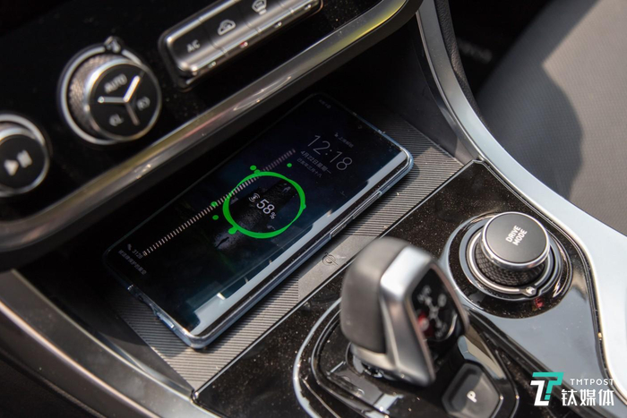 2019款领克01中控台下部的储物槽带有无线充电功能,能够对支持无线充电的手机进行充电,只要把手机背面朝下放到储物槽上就能自动充电,很方便。