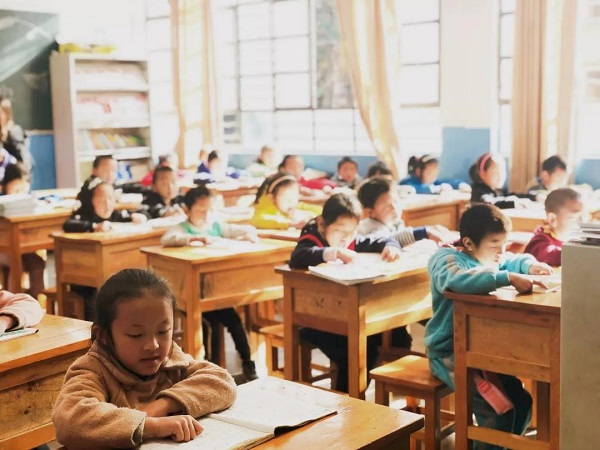 独龙族的孩子如今搬到了宽敞明亮的多媒体教室