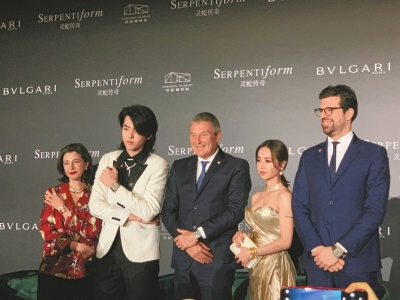 4月29日下午,在主办方为《灵蛇传奇》艺术展举办的新闻发布会上,除了中意主办方策展人员,意大利驻重庆副领事康达城,宝格丽首席执行官让·克里斯托夫·巴宾阐释此次展览的意义之外,包括吴亦凡、蔡依林、宁静、张雨绮、佟丽娅等在内的一众明星演员也都亲临现场,为“灵蛇传奇”展览助阵。