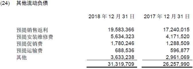预收账款同比-3.60%。美的的销售返利列入其他流动负债: