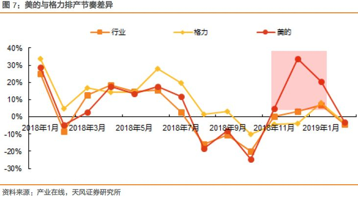 根据天风证券的观察,正是美的与格力排产节奏的差异,导致一季度美的促销力度大于格力: