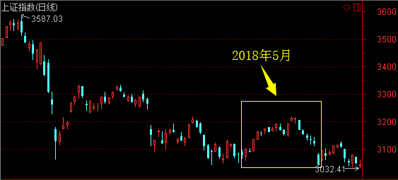 2018年,又是从4月中旬开始调整,进入5月沪指便迎来了反弹,最高上涨至3219点。从进入5月开始,到当月的高点,沪指上涨了137点。