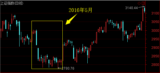 2016年,沪指从“五一”劳动节前的4月中旬开始杀跌,并在5月中旬见到当时的波段底部。接下来沪指从2781点附近,上涨到8月的3140点附近,一共上涨了359点左右。
