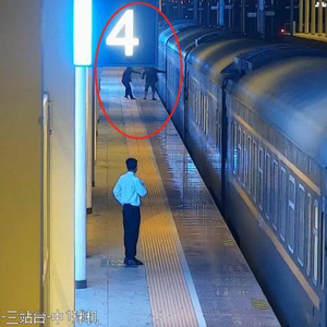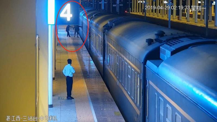 据介绍,当日凌晨2时许,Z202在湛江西站缓缓开动时,一名黑衣男子忽然靠近列车7号车厢,用手强掰车门企图打开列车车门。车站工作人员立即上前拉住该男子予以制止。该男子被拉回后,在随着工作人员离开的过程中,又无视劝阻,进一步做出跳上两节列车车厢之间的外连接处的危险举动。车站工作人员立即呼叫司机紧急停车并向派出所报警。列车紧急刹停,派出所执勤民警将该男子控制并带至安全区域。整个过程导致列车停车20分钟。