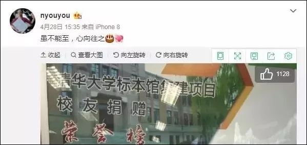 当然她也没忘记自己是清华的校友。以个人名义参与了清华大学标本馆复建项目的捐赠。