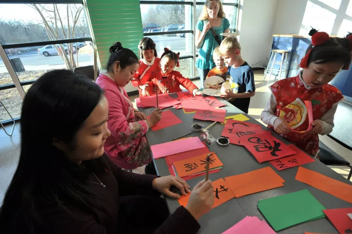 ▲资料图片:2月3日,美国田纳西州,孔子学院的老师们为当地民众写福字,让美国民众感叹中文书法的魅力。