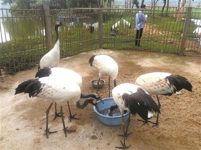 从冰天雪地的东北,来到全年闷热潮湿的肇庆,王杰非常不习惯。而跟随他一起前来的“国宝”们也遭遇了水土不服。齐齐哈尔冬天最低温度达到零下摄氏30度,夏天最高温度也不过摄氏30度。而肇庆夏天最高温度将近摄氏40度,全年闷热多雨。很多丹顶鹤刚到肇庆就有些“中暑”,没有食欲,萎靡不振,没精打采。“这是一个痛苦的过程,但丹顶鹤要在华南地区生存,就必须适应这里的环境。”王杰说,丹顶鹤要实现“北鸟南养”,就必须解决饲养管理、野化驯化、疫病防治、野外繁育等方面的问题。