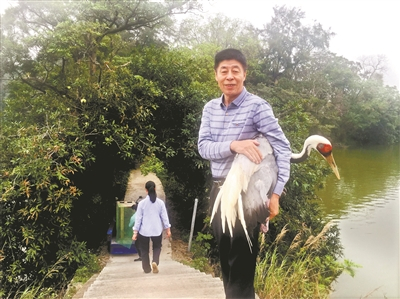 王杰今年65岁,在鹤园工作已经整整16年了。他原来是老家黑龙江齐齐哈尔的某动物园禽类技术员,跟着丹顶鹤一起来到了肇庆。