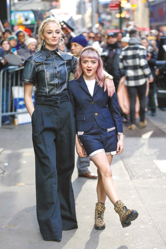 相同的境遇让苏菲和麦茜一有机会就凑在一起叽叽喳喳。麦茜说:“一旦重聚在一起,我们总是有说不完的话。要知道《权游》的故事大部分时间都很悲伤,演员们进入角色时也总是保持严肃。我们也想更严肃一点,但一聊天就停不下来了。”
