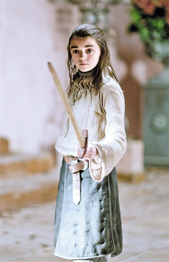 许多剧迷还记得《权游》第一季于2011年4月开播的情景:严寒北境,以冰原狼为族徽的“狼家”史塔克家族镇守着临冬城;大女儿珊莎仪容端庄,女红出色,一心想嫁给一个英俊的王子;小女儿艾莉亚则喜欢舞刀弄枪,捉弄姐姐是她的一大乐趣……