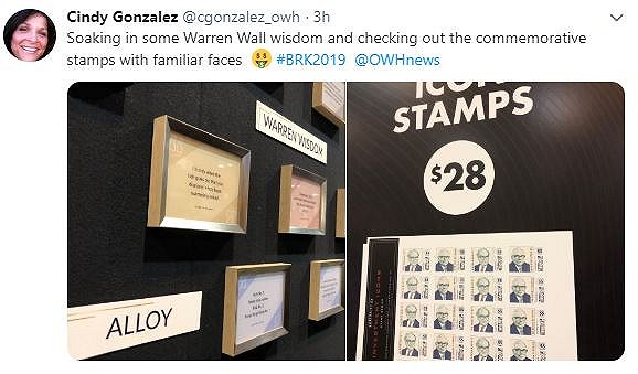 想买东西?先去逛逛百年内衣服饰零售商鲜果布衣(Fruit of the Loom)。由于折扣很深,有人甚至在会场为全家人买一年穿的内衣量,很多东西会在大家的合力“扫货”下很快售罄。店家经常推出只在股东大会上才能买到的纪念服饰,例如印有巴菲特和芒格头像的T恤衫或沙滩裤,2019年推出了两位老人的漫画纪念邮票。
