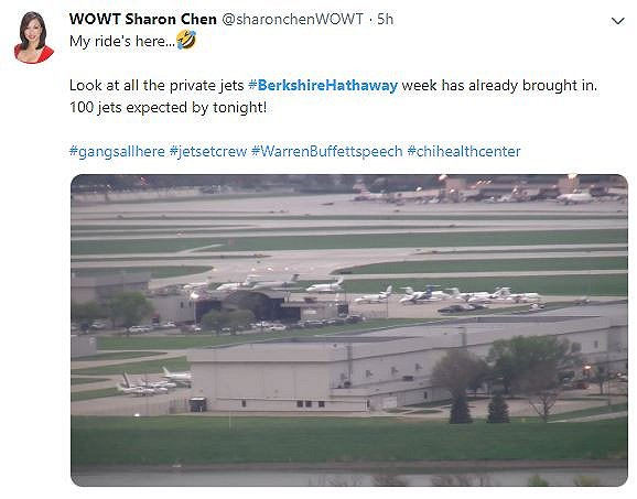 行:奥马哈的Eppley Airfield机场预计,今年股东大会周末将迎来更多的客流量。机场管理局航空服务和业务发展总监Steve McCoy表示,周四到下周一进出奥马哈的飞机客座数量比去年同期增长12%,可能达到创股东大会历史纪录的10.3219万个,进出奥马哈的航班数量增加近8%。达美航空为今年股东大会周末新增了6000多个客座,较去年同期增长14%。同时,这个周末预计有超过100架次的私人飞机降落在奥马哈机场。
