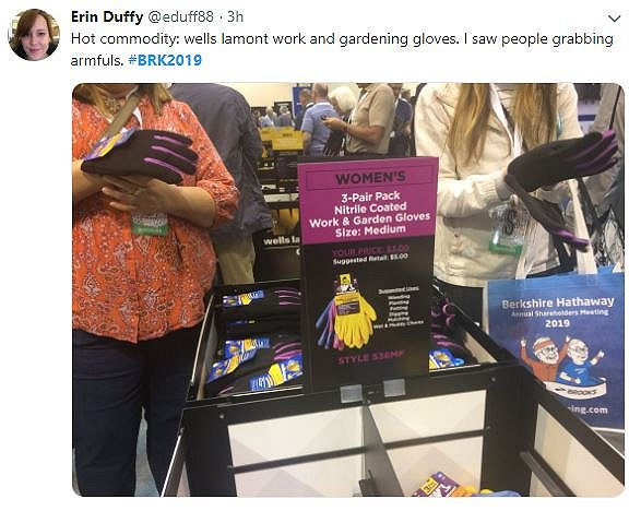 巴菲特钟爱投资带有“大宗商品”属性的消费者必需品企业,股东大会展厅因此很“接地气”。不光有卖厨具、袜子、吸尘器的,还有卖园艺手套的。春天正值美国人开垦自家小花园的时间段,有人在现场疯狂抢购手套。