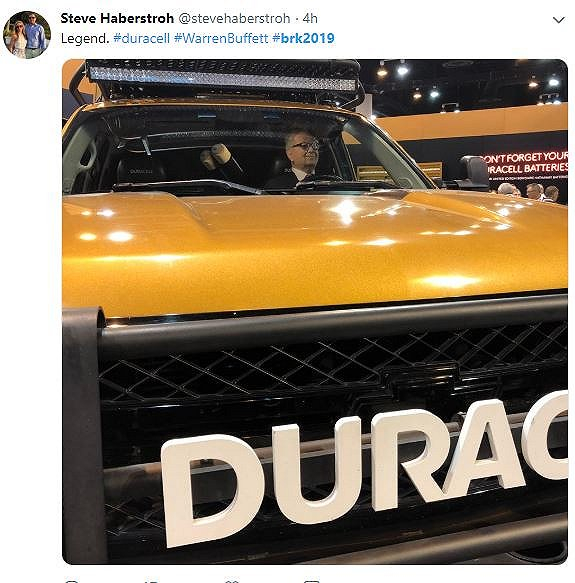 Duracell电池展出的模型车里坐着巴菲特蜡像。