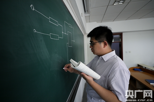 在中央民族大学理工楼,张宇识正在给大一新生上电路分析课。(摄 央广网记者石昊鑫)