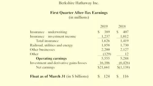 大会开始,巴菲特就对伯克希尔一季度盈利进行了解释。