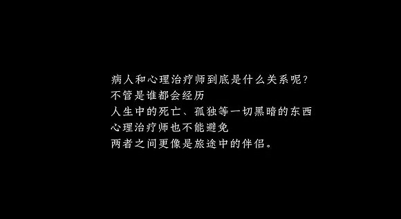 第一集中,白色的空间、压抑的背景音乐、黑白为主的色调,一位女患者被黑色的纱布蒙住眼睛,任由颜书仁牵引着,二人一前一后地静静走着,使整个氛围显得异常沉闷。这是一场治疗“失恋”的戏,因被前男友抛弃而自残的阳阳在心理医生颜书仁的引导下进行宣泄治疗,当她拿着棒球棒砸向人模时,负面情绪像海浪般被彻底宣泄出来,也终于让阳阳直面了失恋的痛苦。整场戏都笼罩在悲哀的情绪之中,就连窦骁的表情和嗓音都非常低沉,也奠定了整部剧集的压抑气氛。