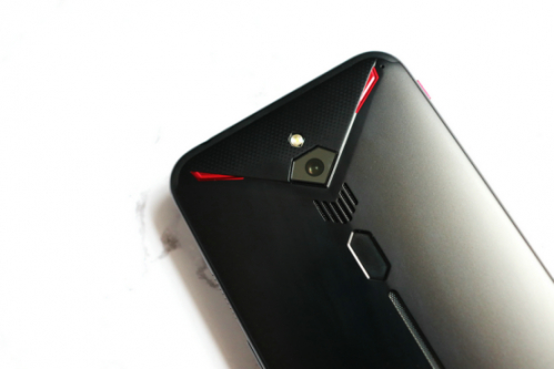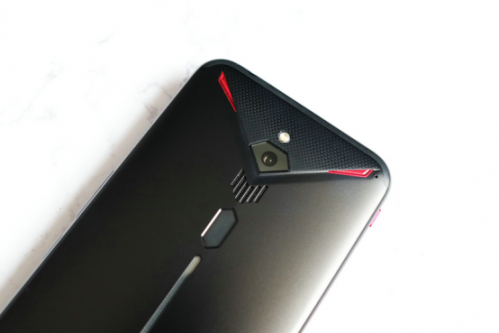 该机背部采用所有对称式设计,后置一颗索尼4800万像素超高清摄像头,下方分别为散热风扇的进风口和后置指纹识别模块。