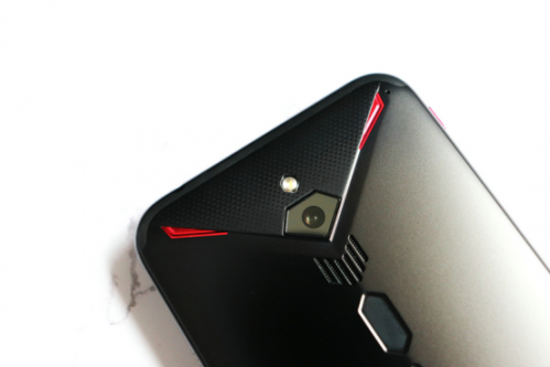 首先我们来看机身背部,与如今主流的玻璃机身不同,作为游戏手机的红魔3的背部依旧采用了金属机身,并将前两款机型中的菱形元素和X造型贯穿在了红魔3的整个设计中,显得凌厉而刚硬的同时,又在边缘以及侧面进行了很好地弧形过渡,保证了握感的舒适。