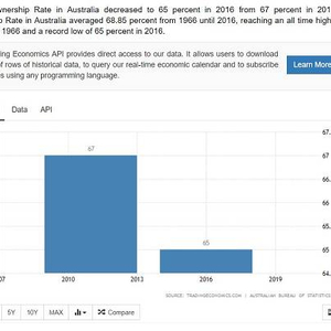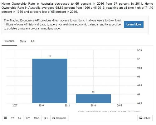 但是疯狂的楼市透支了澳大利亚人的购买力,早在2016年,就有调查称澳大利亚人的住房自有率已经不足65% ,在“千禧一代”中,该数字更是只有28%。最新数据显示,澳大利亚人的住房自有率仍然在下降。