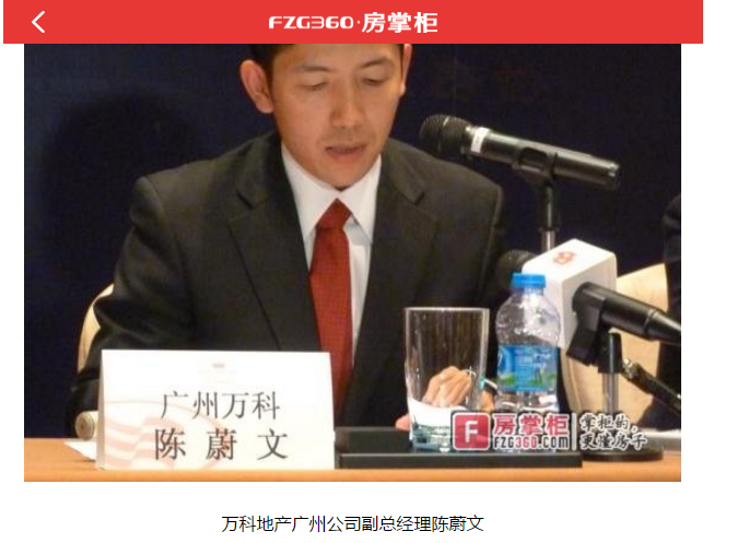 2012年,公开资料显示,陈蔚文曾经担任万科广州公司副总经理。