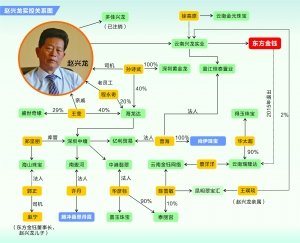 赵兴龙是东方金钰的创始人,2016年卷入徐翔案后辞去董事长职务,2016年底重新掌控东方金钰,赵兴龙的儿子、东方金钰名义上的董事长赵宁已不参与管理公司事务。