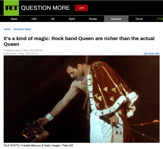 【环球网报道 实习记者 温家越】皇室一直是财富的代名词,没想到,在英国《星期日泰晤士报》最新公布的富豪榜上,摇滚传奇“皇后乐队”却超越真正的皇后,英国女王伊丽莎白二世。