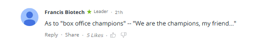 对于此次新富豪榜的结果,有网友调侃称,唱“我们是冠军”(We are the champions)的皇后乐队,真成“冠军”了↓