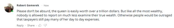 也有人表示“别傻了”,这只统计了女王一小部分财富而已。↓