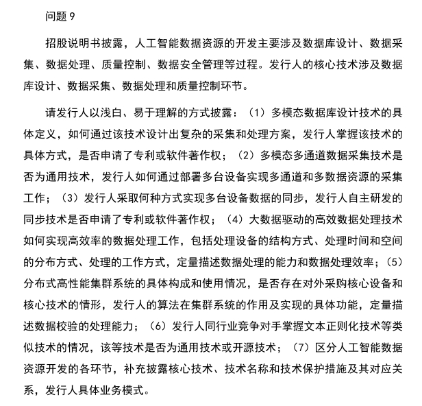 另一方面,人工智能数据资源的开发主要涉及数据库设计、数据采集、数据处理、质量控制、数据安全管理等过程。而海天瑞生的核心技术涉及数据库设计、数据采集、数据处理和质量控制环节。上交所要求海天瑞生用浅白、易于理解的方式进一步披露更多信息,海天瑞生也对此做了进一步的解释和回复。