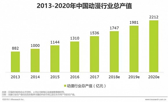 而据艾瑞数据显示,2018年中国动漫产业总产值已经突破1700亿,而且这一数值还在增长,预计在2019年,产业总产值将超过1900亿,并有望向2000亿总产值冲击。但是,动漫产业总值在快速增长,其下游的衍生品等业务却并未形成成熟的链条,我国的动漫产业仍有很大的发展空间,并且动漫公司的行业格局并未形成,国漫行业的发展前景十分广阔。