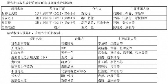 为了进一步加深在影视业务上的发展,公司不但砍掉了不相关的直播业务,还在报告期内新签约一批艺人、成立编剧导演事务部,意图通过人才机制保证影视剧的质量,让彼此赋能。