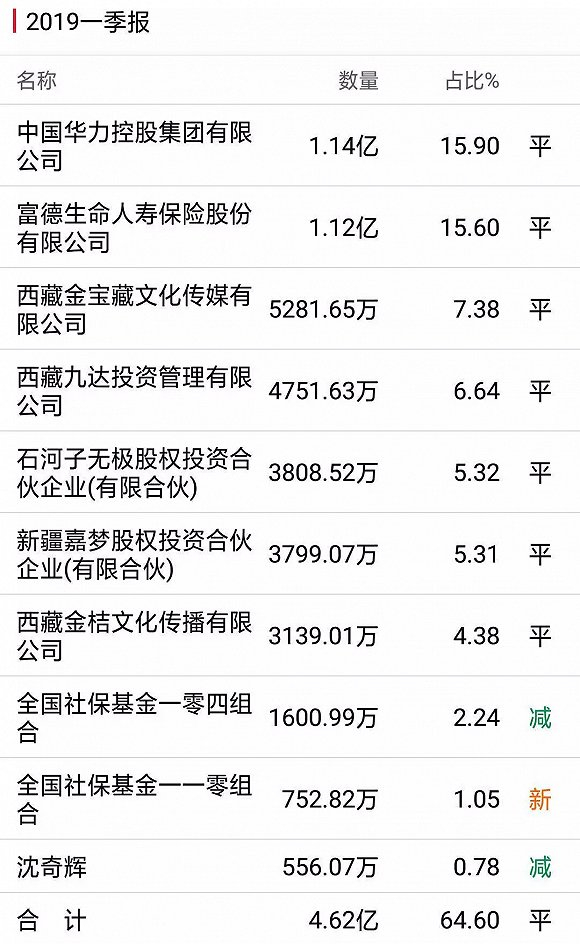 而北京文化背后股权分散的问题,也是威胁上市公司稳定的一大隐患。第一大股东华力控股仅持股15.9%,第二大股东富德生命人寿保险股份有限公司,持股15.6%。