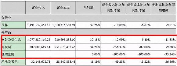 光线传媒:扣非净利润首次亏损,三大主营毛利润齐降