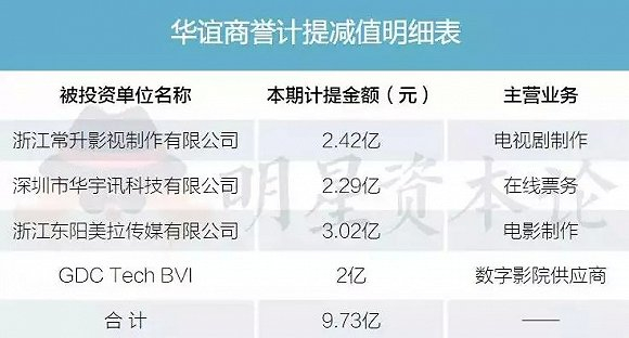 10.93亿的亏损额中,商誉减值金额就占到9.73亿元。常升影视、东阳美拉分别是张国立和冯小刚的公司,后者仍在业绩对赌期,净利润6501.5万元远达不到1.3亿业绩对赌要求,向上市公司补了6800万的业绩补偿。十万倍溢价买美拉,“冯小刚依赖”让华谊付出迟来的代价。