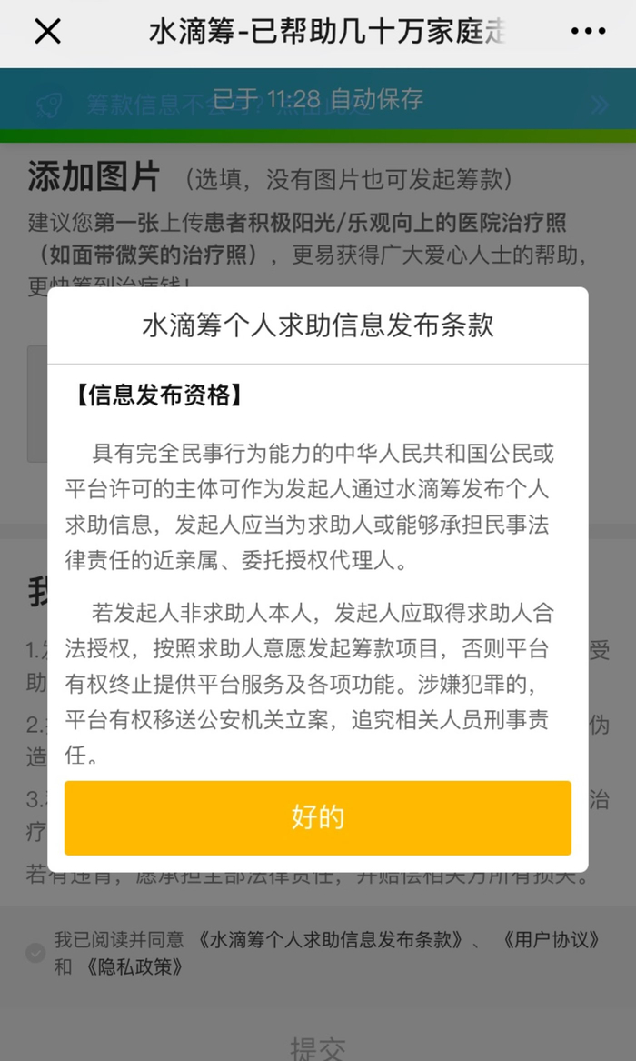 但也必须指出的是,《条款》中也要求在求助信息发布内容中完整、真实、准确地公开求助人的家庭经济状况。