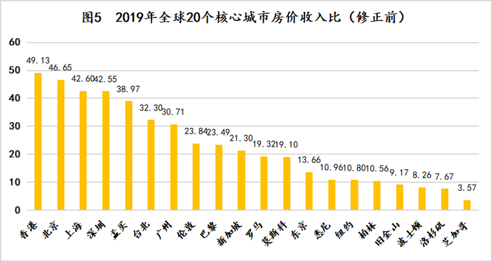 2、京沪深中心城区的房价收入比超过40倍,家庭储蓄四十年以上才能买到一处中心城区普通住宅,买房负担极重,修正前仅次于香港,修正后全球最高。