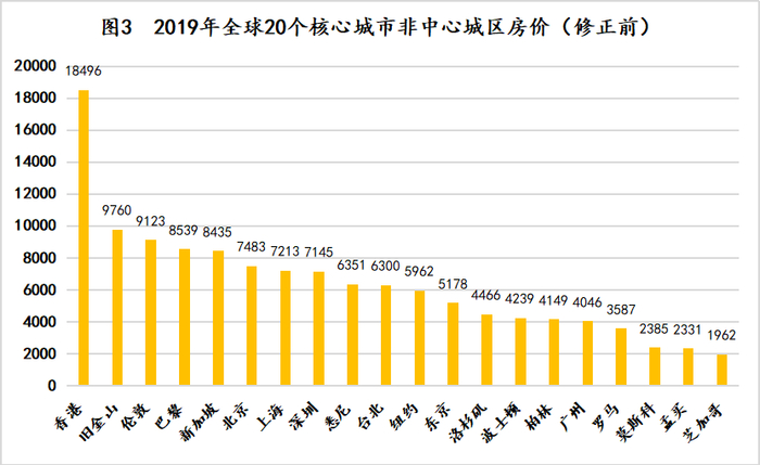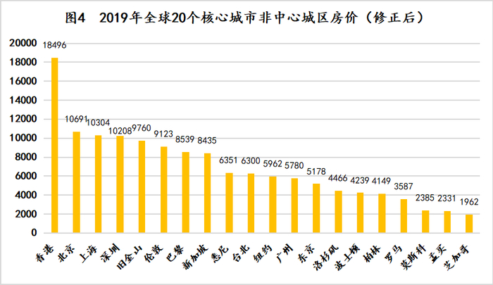 非中心城区也按照70%的得房率进行折算后,北京、上海和深圳非中心城区房价分别为10691美元/平方米、10304美元/平方米和10208美元/平方米,仅次于香港,成功超过旧金山、伦敦、巴黎和新加坡等国际大都市。